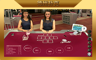 • 德州扑克Texas Hold'em,使用52张扑克牌,玩法是利用2张底牌与牌桌上的5张公牌,共7张牌,再取其中5张组成最佳牌组,玩家单纯与荷官比拚牌型大小而不用考虑花色,是一款考验智力与运气的扑克游戏。